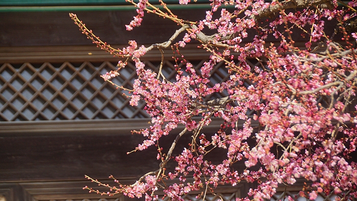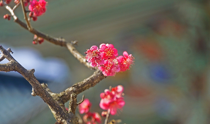 홍매는 이곳 말고도 피는곳은 많지만 통도사에 피는 홍매는 피는 장소의 가치 때문에 있을 곳에 핀 유명한 홍매이지요.