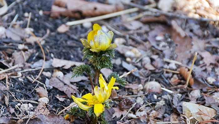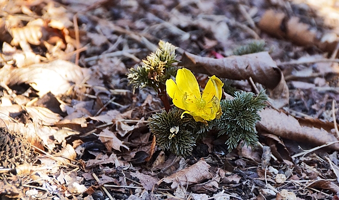 아주 예쁜 자태는 아니지만 일찍 핀 복수초 몇장 담아 왔습니다.