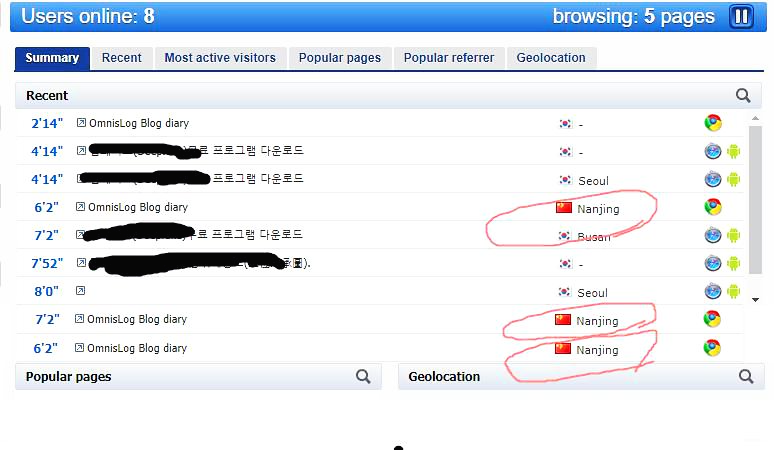 내 블로그 유입경로에 나타난 중국 난징.