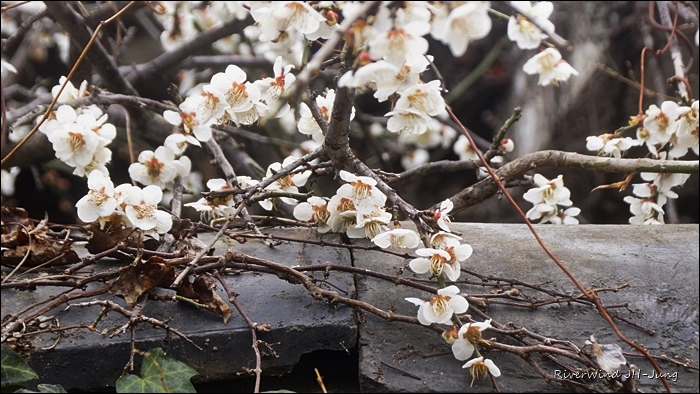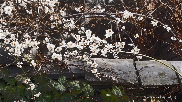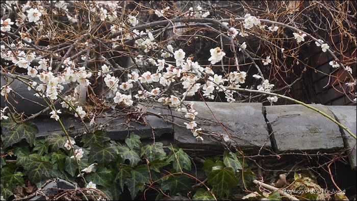 어느 집 뒷켠에서 짙은 향기로 나를 이곳까지 유혹한 담장 너머로 드리운 매화 가지를 만납니다.
