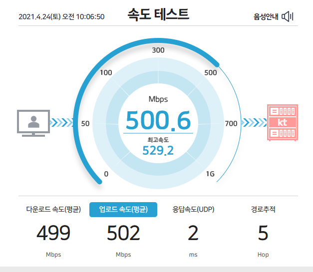 기술적인 속도 브레이크가 걸려있는진 모르지만 정확하게 500Mbps이상은 넘어가지 않는군요.