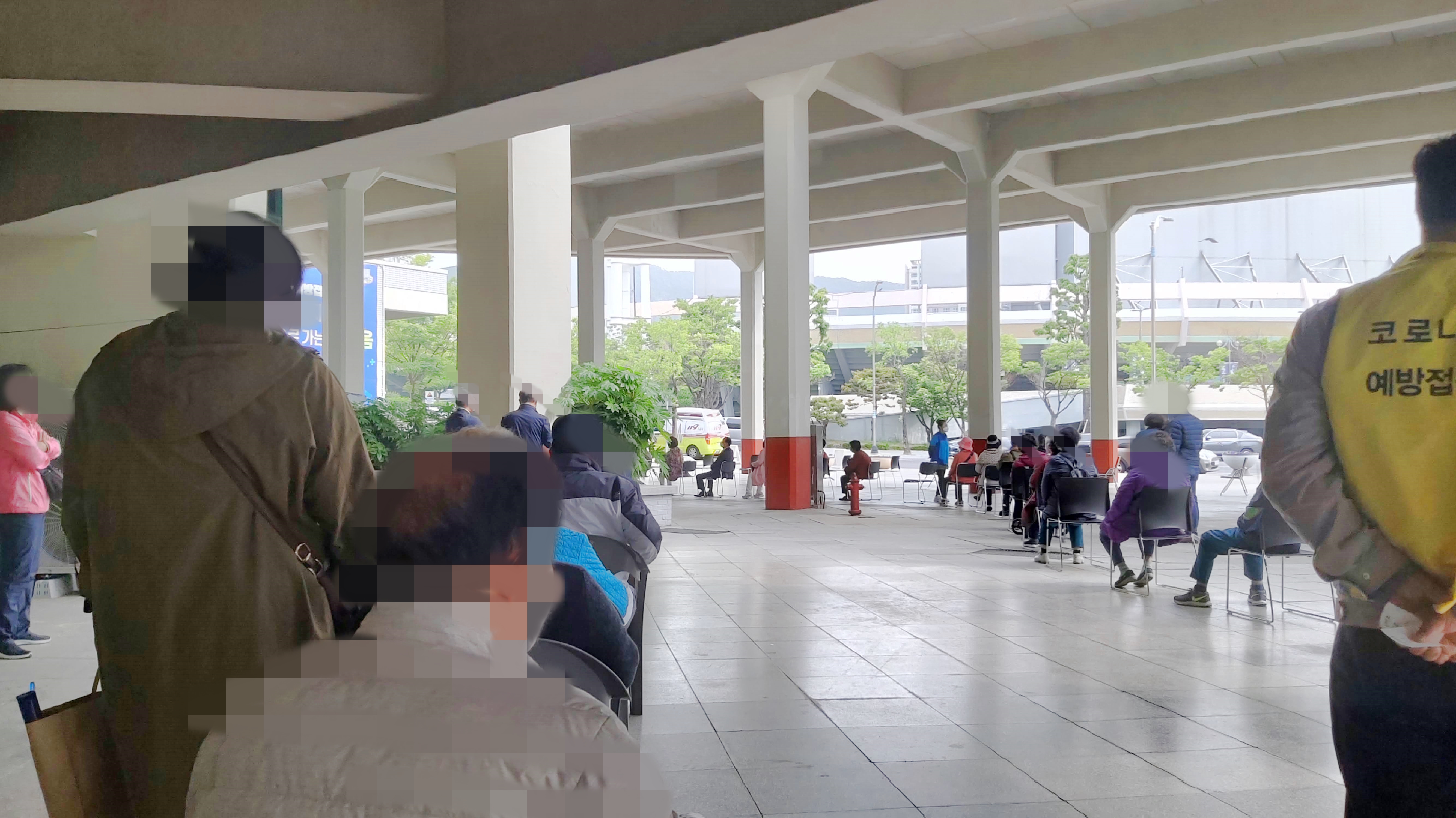 아침 9시 예약하고 8시 30분 동래구 접종 장소인 사직 실내체육관 현장에 도착했는데 발 빠른 분들이 벌써 쭉 대기하고 있습니다.