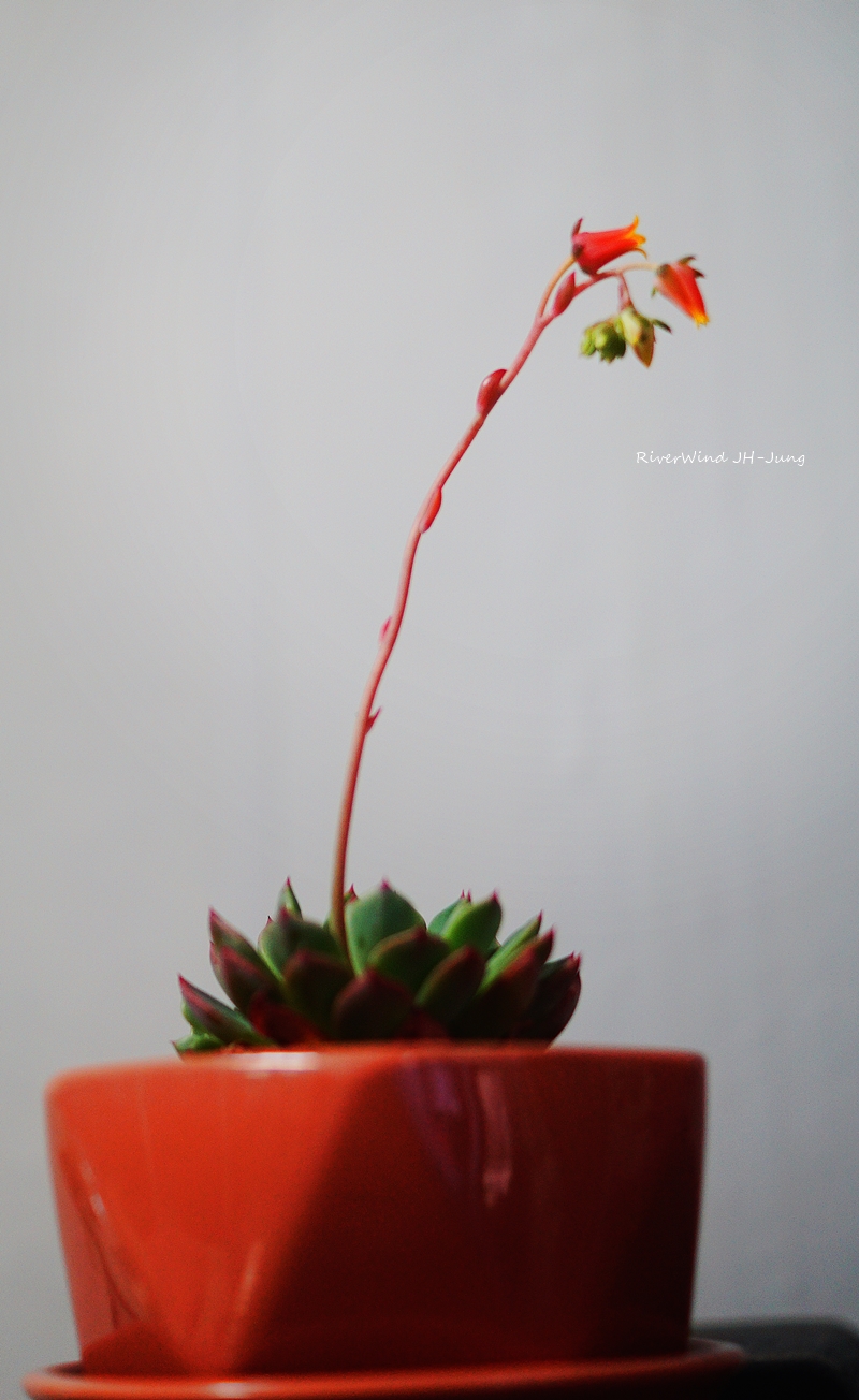 이 작은 다육이가 도도하게 꽃대를 올리더니 상상을 뛰어넘는 예쁜 꽃을 피웁니다.