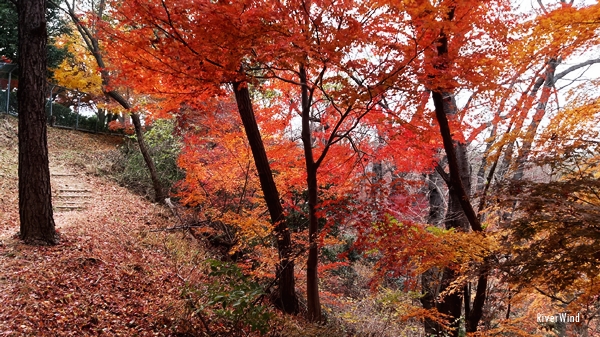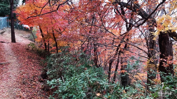 대상포진 후유증으로 아직 체력이 원만하지 못해서 대포산 까지 한 바퀴 도아 오는 코스는 무리일 것 같아 충열사에서 망월산만 간단히 돌아오라고 동장대 뒷길을 드러 서면서 아렇게 불타는 예쁜 단풍을 봅니다.