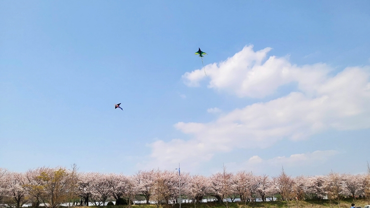 부산의 명품 벚꽃길 낙동강변 벚꽃길 30리 풍경입니다. 대저 생태 공원 유채 밭에서 을숙도까지 맥도 뚝길은 부산의 대표적인 벚꽃 길입니다. 이름은 낙동강변 30리 벚꽃 길입니다. 지금 벚꽃 축
