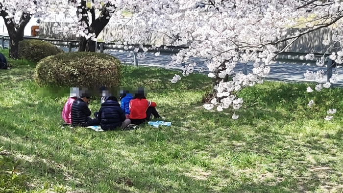 뚝길 꽃그늘 아래에는 삼삼오오 봄꽃을 즐깁니다.
