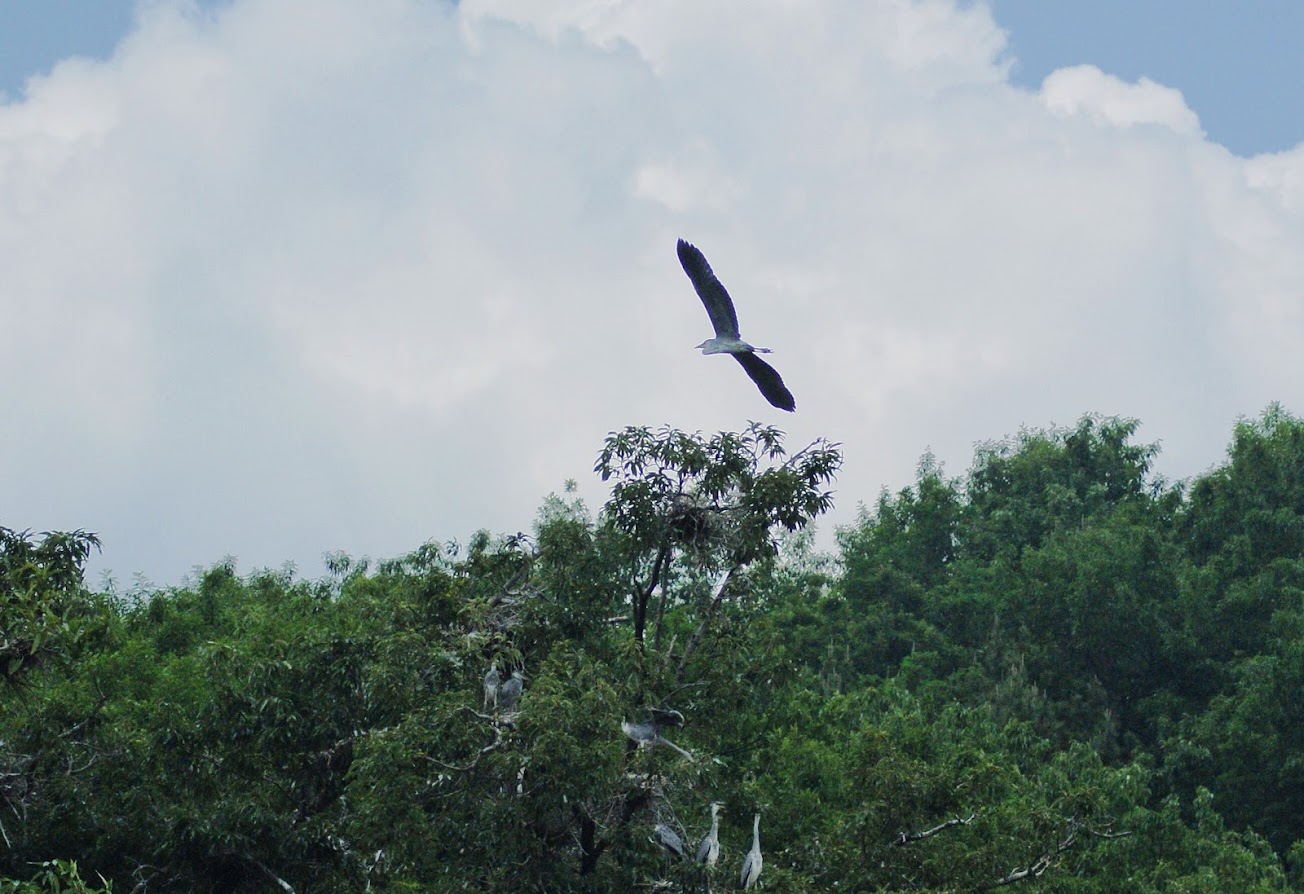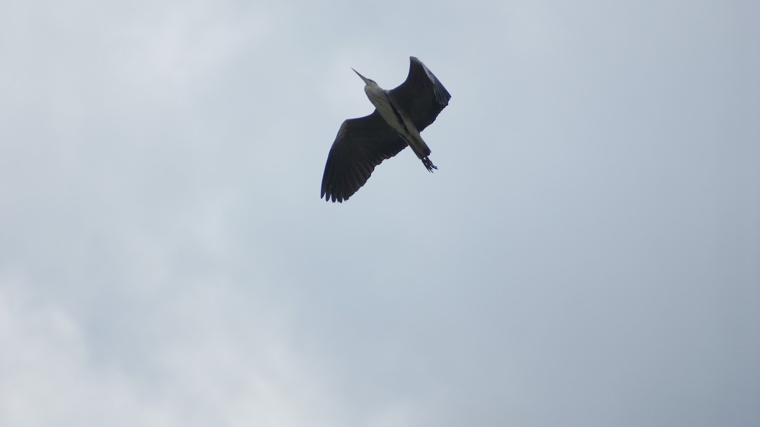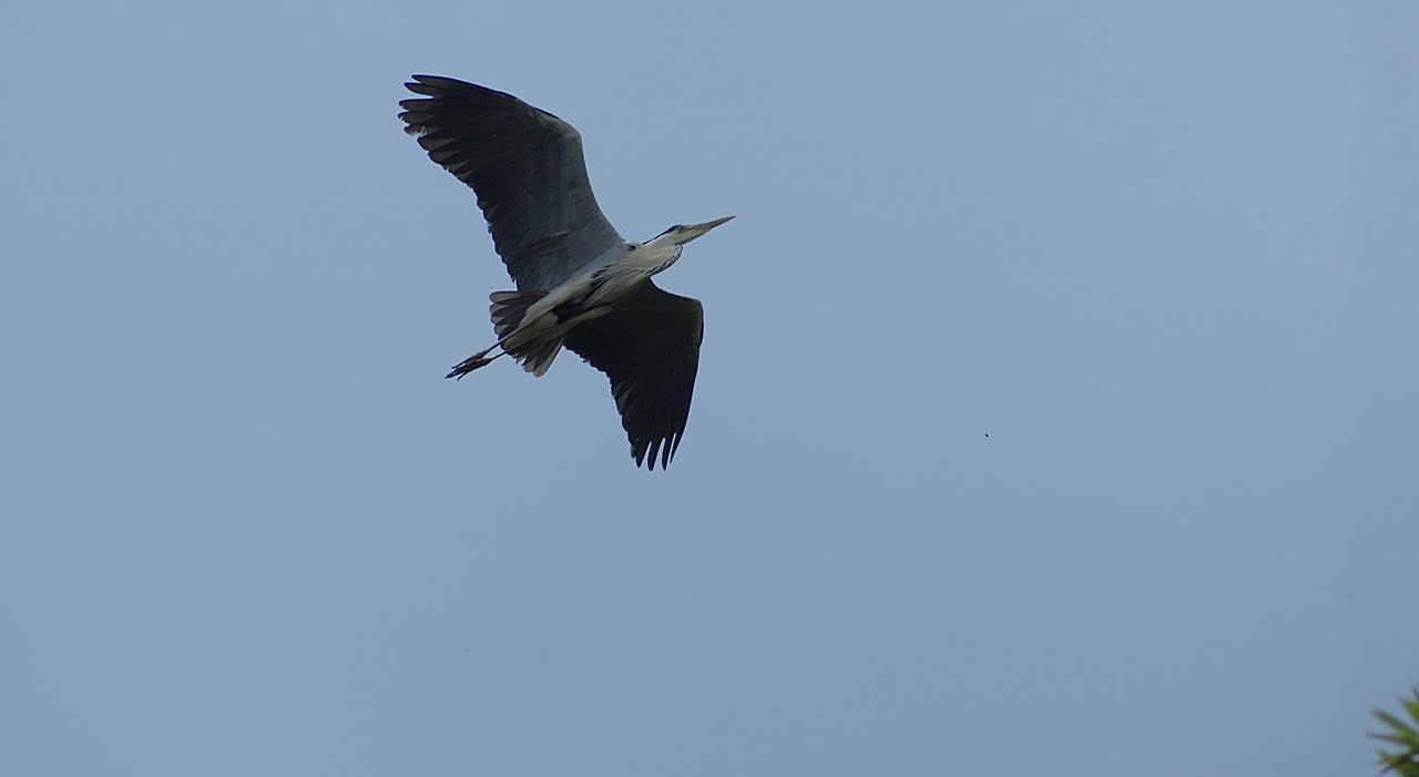 머리 위로 날아다니는 왜가리의 모습이 커다란 전투기처럼 보입니다.