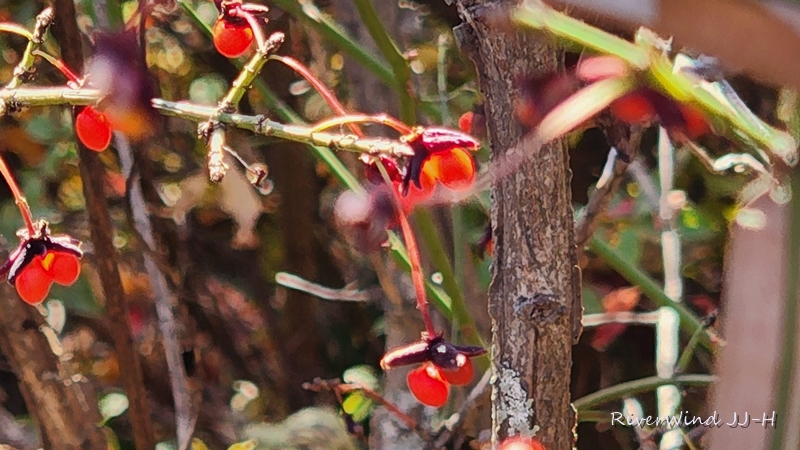 화살나무 빨간 열매가 단풍과 섞여서 정말 예쁩니다.