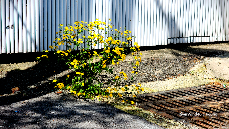풀꽃 한그루가 어찌어찌하다가 살아 남아서 저렇게 꽃을 피우니 나라도 그 풀꽃을 제거하지 않을 것입니다.