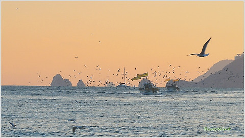그 옛날 해운대 지역의 사람들은 어부들이 먼 마다로 고기잡이를 나가고 해가 질 때쯤 수평선 너머로 고기잡이 나간 어부들을 기다립니다. 해 질 때쯤 갑자기 갈매기 무리들이 오륙도 방향으로 날아가고 갈매기가 날아가는 쪽을 따라서 바라보면 만선의 깃발을 펄럭이는 어선들이 보이기 시작합니다. 오륙도를 지나고 송두말을 돌아서 해운대 미포로 들어오는 어선들이 하나 둘 점점 크게 보이기 시작하며 어선에 펄럭이는 깃발과 따라붙는 갈매기떼가 장관을 이루며 이윽고 해운대 해변으로 미포 선착장으로 들어오기 시작하면서 일몰은 깊어지고 바다는 붉게 물들어 저 멀리 아스라이 보이는 수평선에 오륙도가 떠 있고 바다를 바라보는 송두말의 실루엣은 그림처럼 아름답습니다. 붉게 물든 해운대 앞바다로 들어오는 어선들의 뒤로 줄지어 따라붙는..